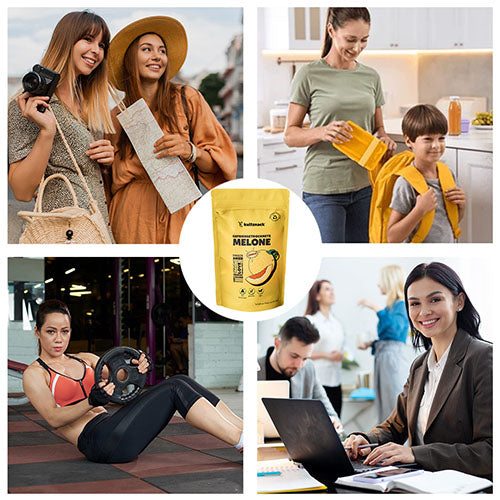 Sluit je ogen en stel je voor dat je de zoete, zonnige geur van verse meloen proeft – dat is precies wat onze gevriesdroogde honingdauwmeloenstukjes van Kultsnack je bezorgen. Bijzonder aromatisch, fruitig en aangenaam zoet, brengen ze de zomer in elk seizoen. Fris, heerlijk fruitig en 100% natuurlijk, zonder enige toevoegingen – puur genieten wanneer je maar wilt. Of het nu als speciale fruitsnack is, in muesli, yoghurt, dessert of zelfs in een drankje – deze meloen brengt altijd een glimlach en een vleugje vakantie in je dagelijkse leven.