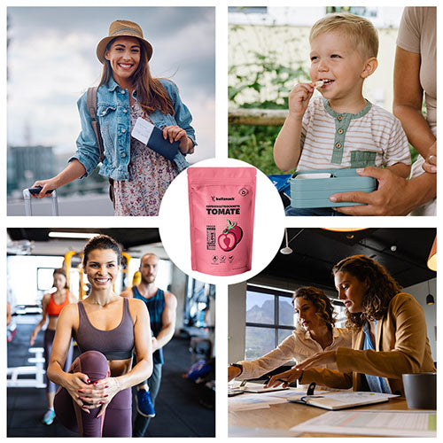 Ben je dol op de geur van zongerijpte tomaten? Dan zul je onze gevriesdroogde tomaten van Kultsnack helemaal geweldig vinden! Ze smaken zo intens, alsof ze vers van de plant geplukt zijn – maar dan knapperig, luchtig en boordevol natuurlijke vitamines. Of het nu gaat om een snelle snack, een topping voor je salade, bij de pasta of in romige dips – ze geven elk gerecht net dat beetje extra. 100% natuurlijk, zonder toevoegingen, suiker of ggo's – gewoon pure tomatenkracht waar je elke dag weer van zult smullen.
